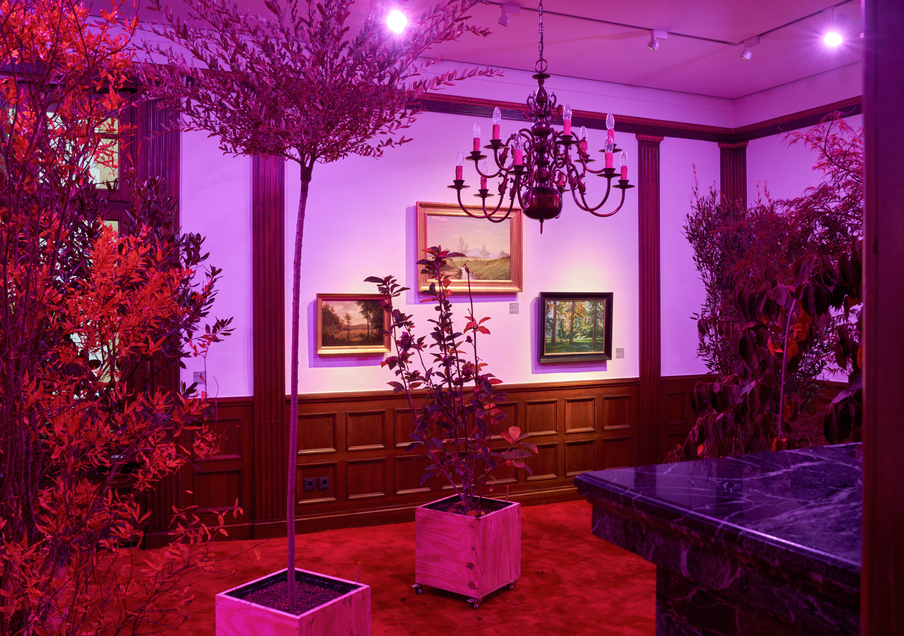 Mit seinem Kunstwerk Root Sequence. Mother Tongue bringt Asad Raza insgesamt 26 lebende Bäume ins Museum. Der New Yorker Künstler sieht die Bäume nicht als Objekte, sondern als Akteure eines lebendigen Netzwerks. Nach der Ausstellung sollen sie dauerhaft auf dem Campus der Goethe-Universität eingepflanzt werden.