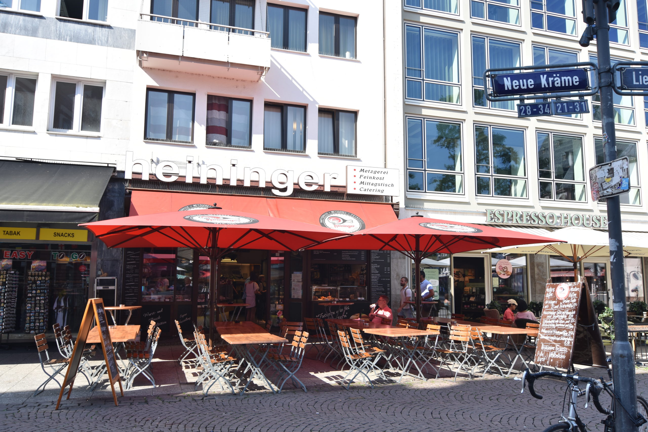 Tatsächlich gibt es in der Frankfurter Altstadt auch heute noch einige alteingesessene Metzgereien, die reichlich Stammkundschaft haben. So in der Braubachgasse, am Liebfrauenberg und natürlich in der Kleinmarkthalle die Flaaschworscht bei Frau Schreiber. Die Altstadtmetzgerei Dey siedelte komplett von der Kleinmarkthalle in die Neue Altstadt um.